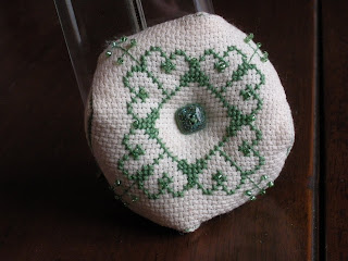 Sono due quadrati di tela Aida o di lino, ricamati e poi cuciti insieme con una morbida imbottitura. Troverete tante spiegazioni nel web, aggiungo questo link che vi porterà a tanti schemi dove scegliere quello che più vi ispira.